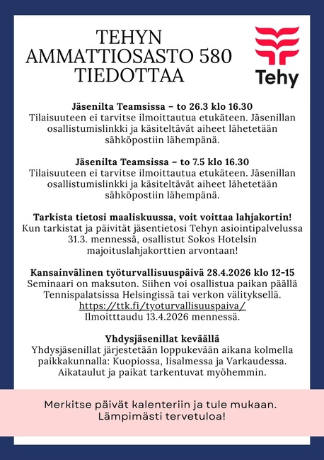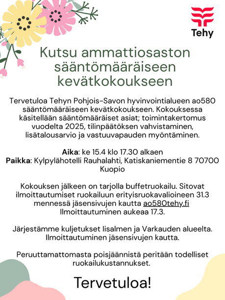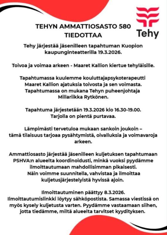 Facebook: Tehyn Pohjois-Savon hyvinvointialueen ao 580